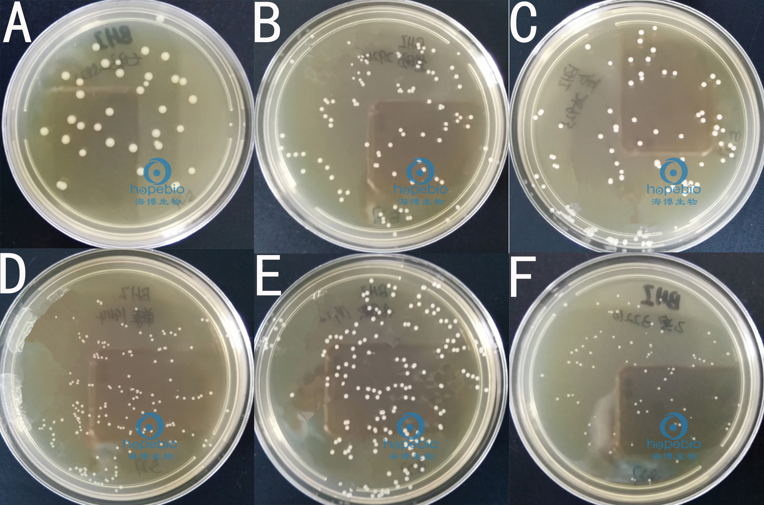 A:大肠埃希氏菌;B:粪肠球菌;C:金黄色葡萄球菌;D:单增李斯特氏菌;E:化脓性链球菌;F:乙型溶血性链球菌