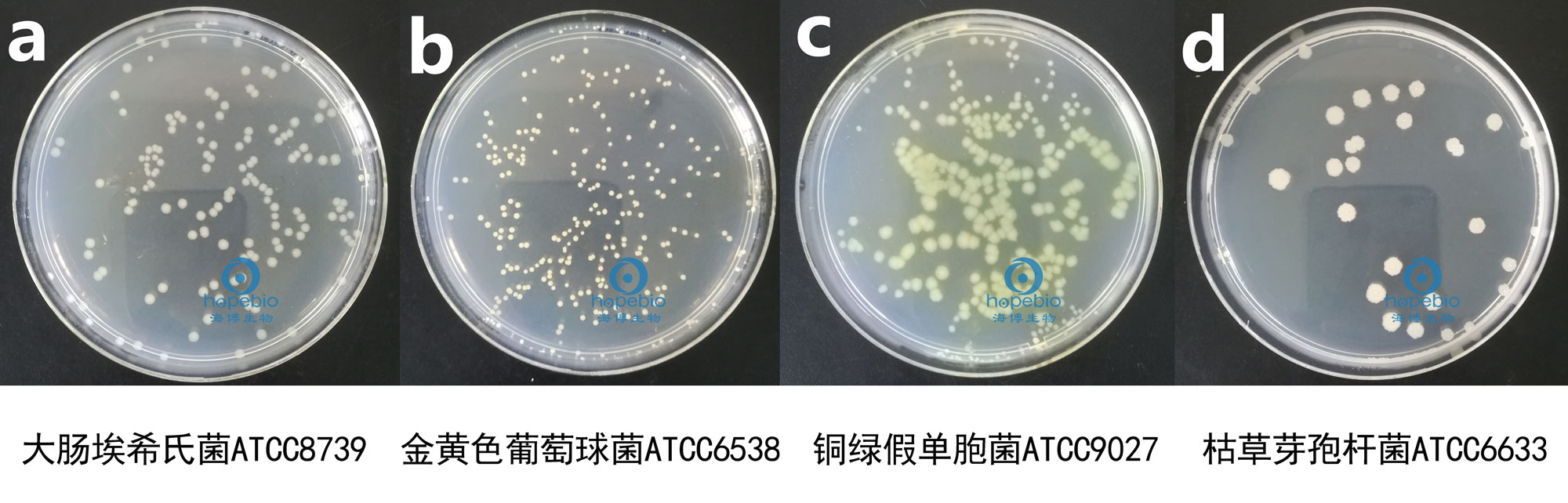1、称取本品24.0g,加入1000 mL蒸馏水中,121℃高压灭菌15 min,冷却后倾入无菌空平皿中,备用。
