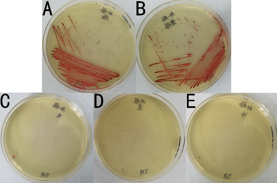 A:肠球菌;B:粪肠球菌;C:大肠埃希氏菌;D:金黄色葡萄球菌;E:鼠伤寒沙门氏菌