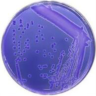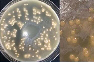 培养24h后,菌落2mm~3mm,表面光滑、湿润,培养48h后,菌落周围形成乳白色混浊环,斜射光下可见菌落及周围培养基表面呈虹彩现象。 (通常需培养3-4d才看到明显特征) |