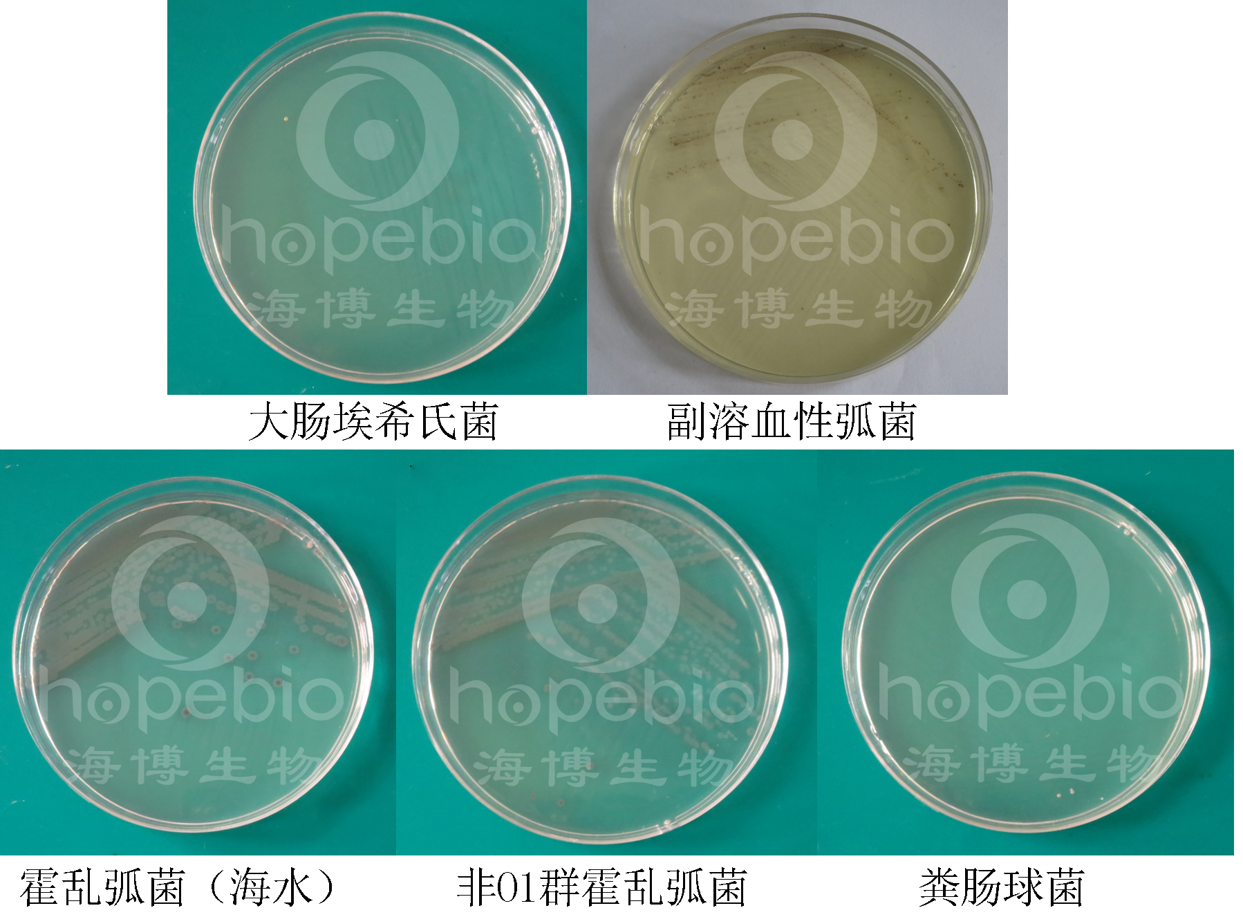用于霍乱弧菌选择性分离培养。蛋白胨、牛肉粉提供碳氮源、维生素和生长因子;氯化钠维持均衡的渗透压;亚硫酸钠可刺激弧菌生长;柠檬酸钠、十二烷基硫酸钠、牛胆粉、利凡诺、庆大霉素和亚碲酸钾及较高的pH 可抑制革兰氏阳性菌和部分革兰氏阴性杂菌;霍乱弧菌对酸性环境比较敏感,因此该pH 值可增强其生长;琼脂是培养基的凝固剂。