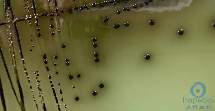 在HE平板上挑取可疑菌落优先顺序为:无色或淡绿色透明,黑色中心菌落>无色或淡绿色透明菌落>黄色带黑色中心菌落。