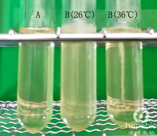 小肠耶尔森氏菌穿刺接种于半固体琼脂中,在26℃培养有动力而在36℃培养无动力,如图4所示: