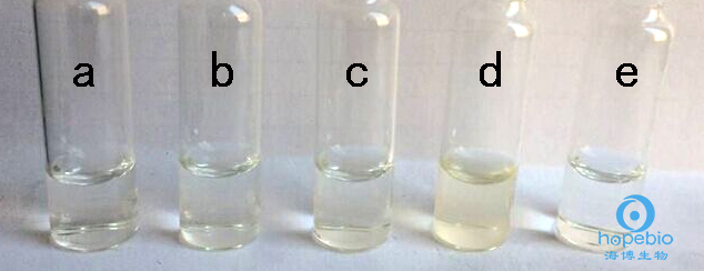 d:氰化钾阳性反应,浑浊生长;a、b、c:氰化钾阴性反应,澄清不生长 |