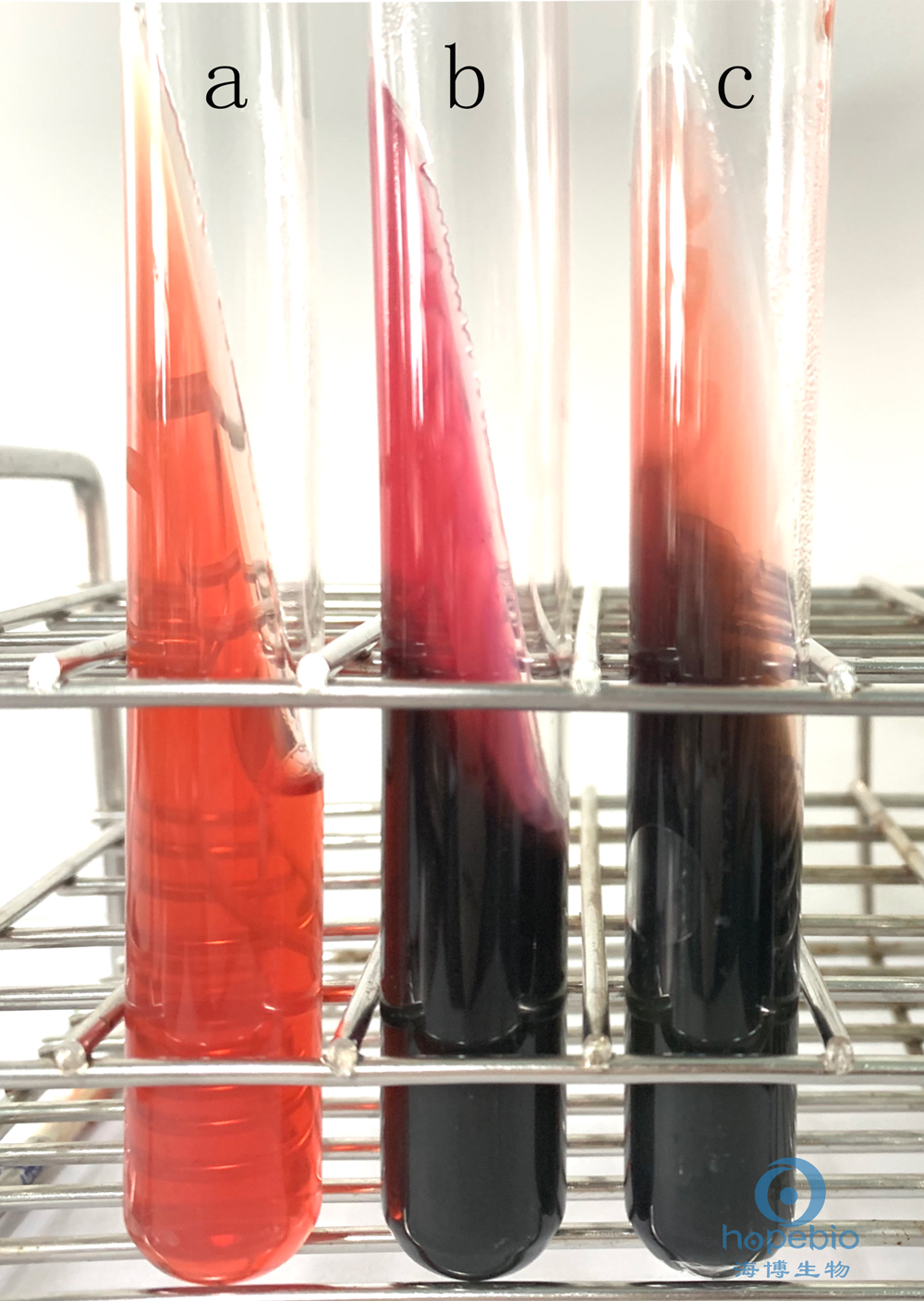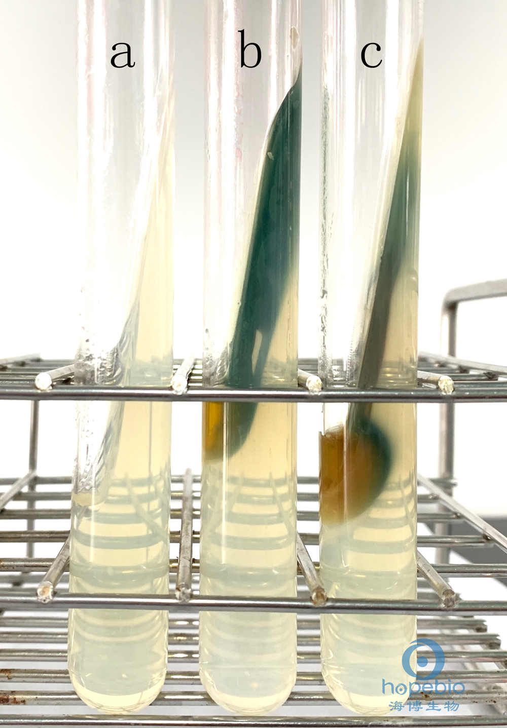 注意:能产生硫化氢的菌应及时观察试验结果,以免生成的硫化铁形成黑色区域,遮盖斜面与底层的颜色影响判断结果。