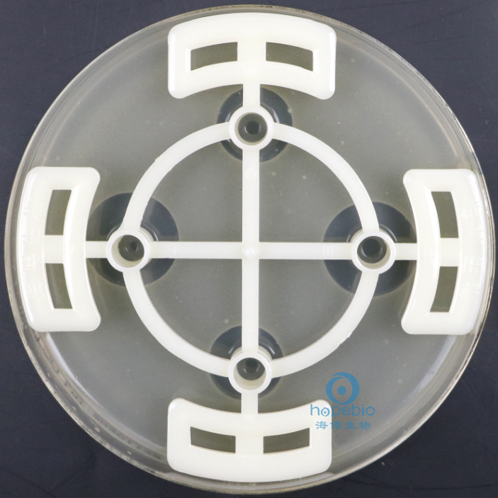4、HB四连式牛津杯中央有凸点且平衡翼上标有“海博生物”字体的为产品正面。
