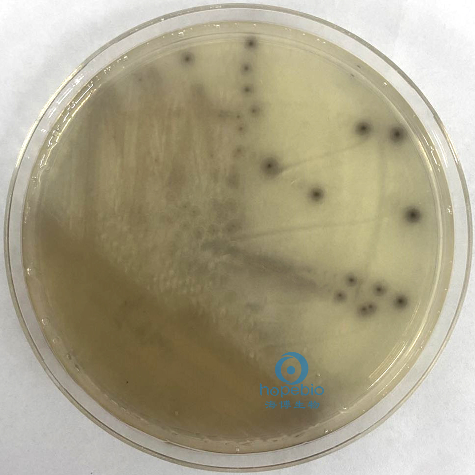 菌落中心形成黑色金属碲沉淀 |