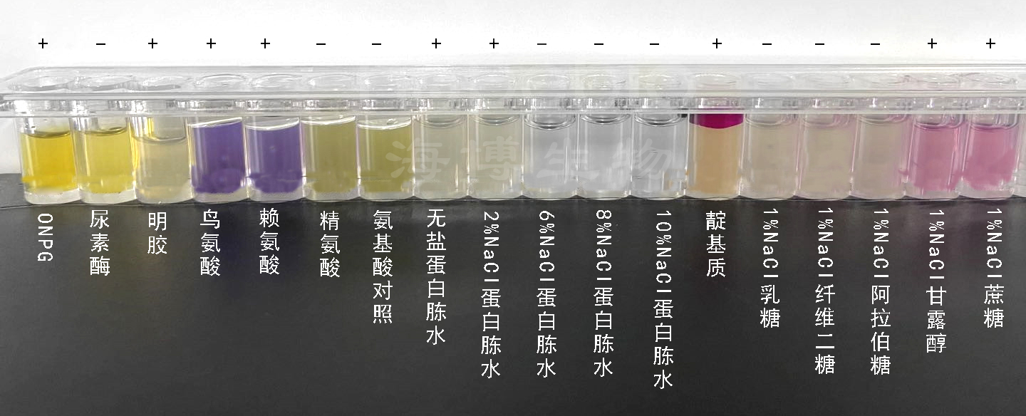 所用试剂:青岛海博HBI霍乱弧菌生化鉴定条(SN)。