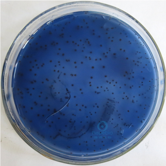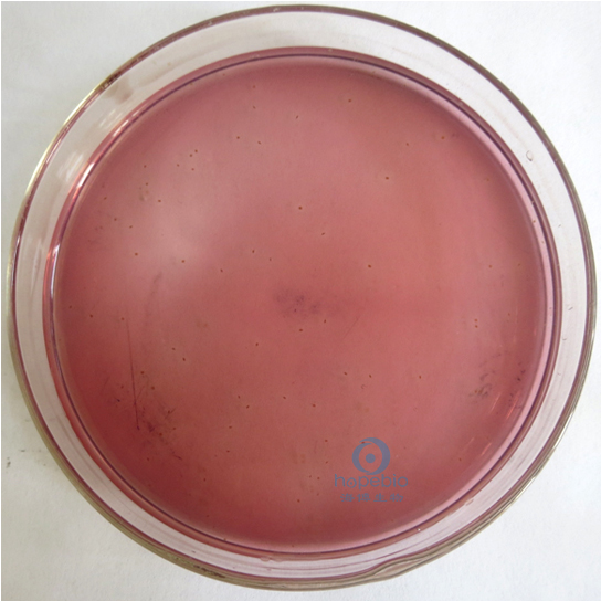粪大肠菌群可在44.5℃条件下分解乳糖产酸,使培养基pH下降,菌落为亮蓝色,其他不发酵乳糖的肠道菌菌落为无色、灰色或淡红色。
