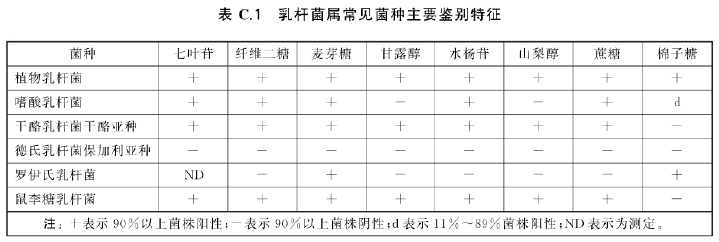 使用细菌生化鉴定试剂盒进行生化鉴定。鉴定特征见附B.1。乳杆菌属常见菌种主要鉴别特征参见表C.1。