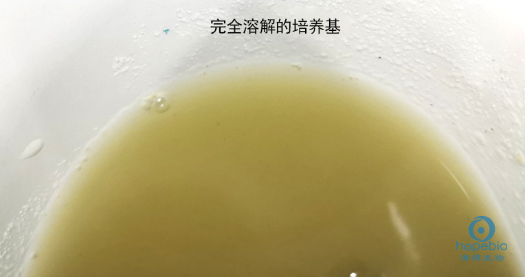 所有的培养基,在煮之前必须搅拌至完全溶解,不允许将尚有成团培养基的状态下,直接进行加热煮沸,那样很容易出现灭菌不彻底的现象,尤其是有些含琼脂的培养基,甚至会有部分琼脂不能彻底溶解,导致倒出的平皿上有明显的麸皮状琼脂小颗粒,或者有些含有染料的培养基也可能出现染料颗粒,都会影响培养基的使用(所述各种情况见下图)。