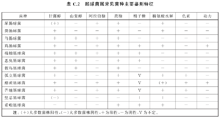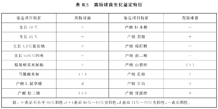 使用细菌生化鉴定试剂盒进行生化鉴定。鉴别特征参见表B.5。肠球菌属常见菌种主要鉴定特征见表C.2。