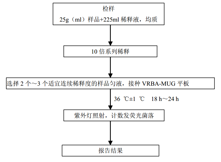 两个平板上发荧光菌落数的平均数乘以稀释倍数,报告每g(mL)样品中大肠埃希氏菌数,以CFU/g(mL)表示。若所有稀释度(包括液体样品原液)平板均无菌落生长,则以小于1乘以最低稀释倍数报告。