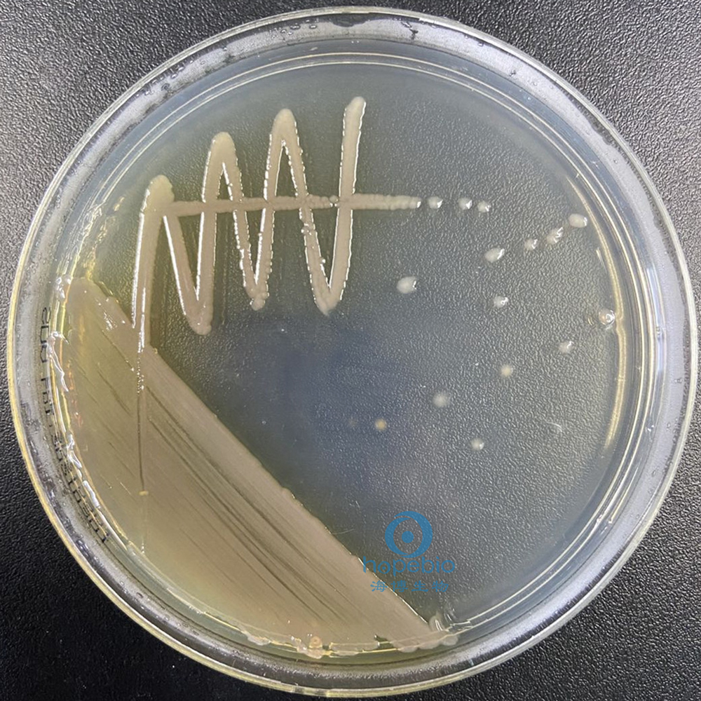 此干燥培养基粉末均匀,呈乳白色,煮沸灭菌后制备好的固体平板为无色透明状。