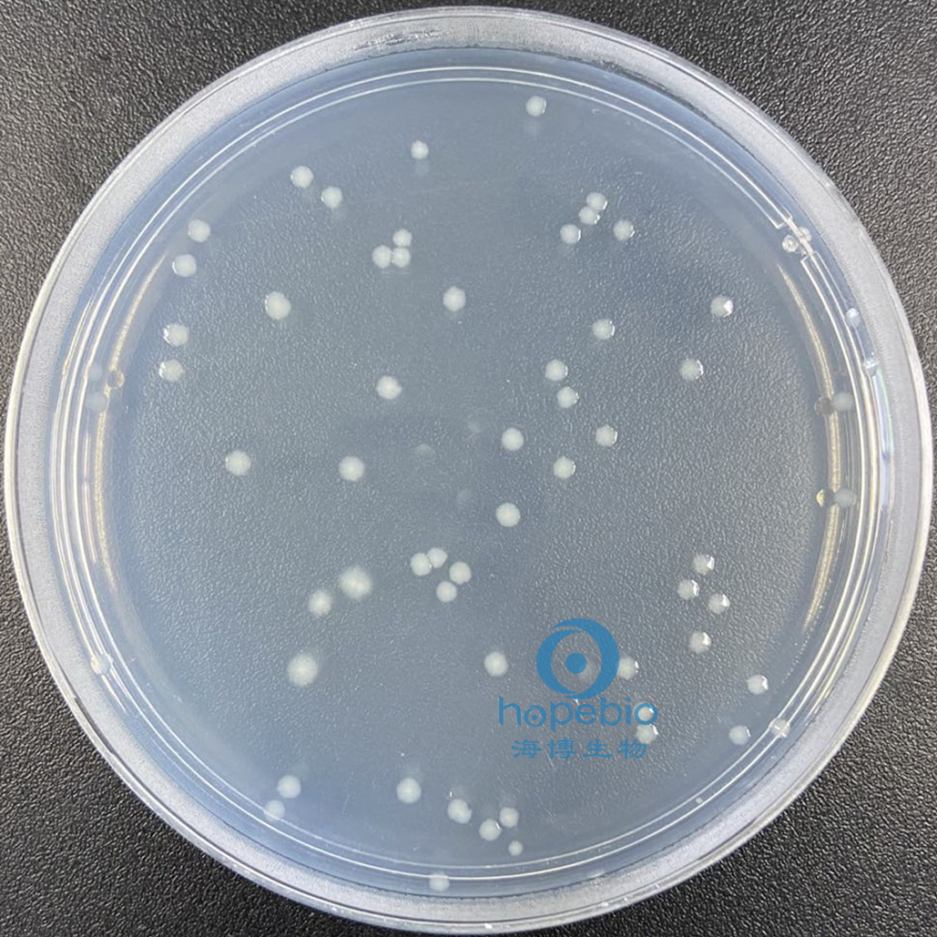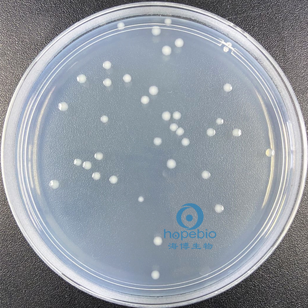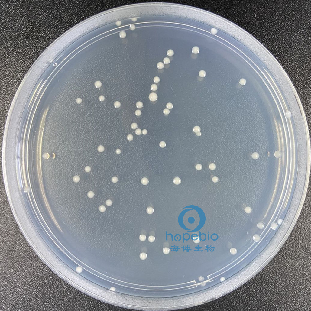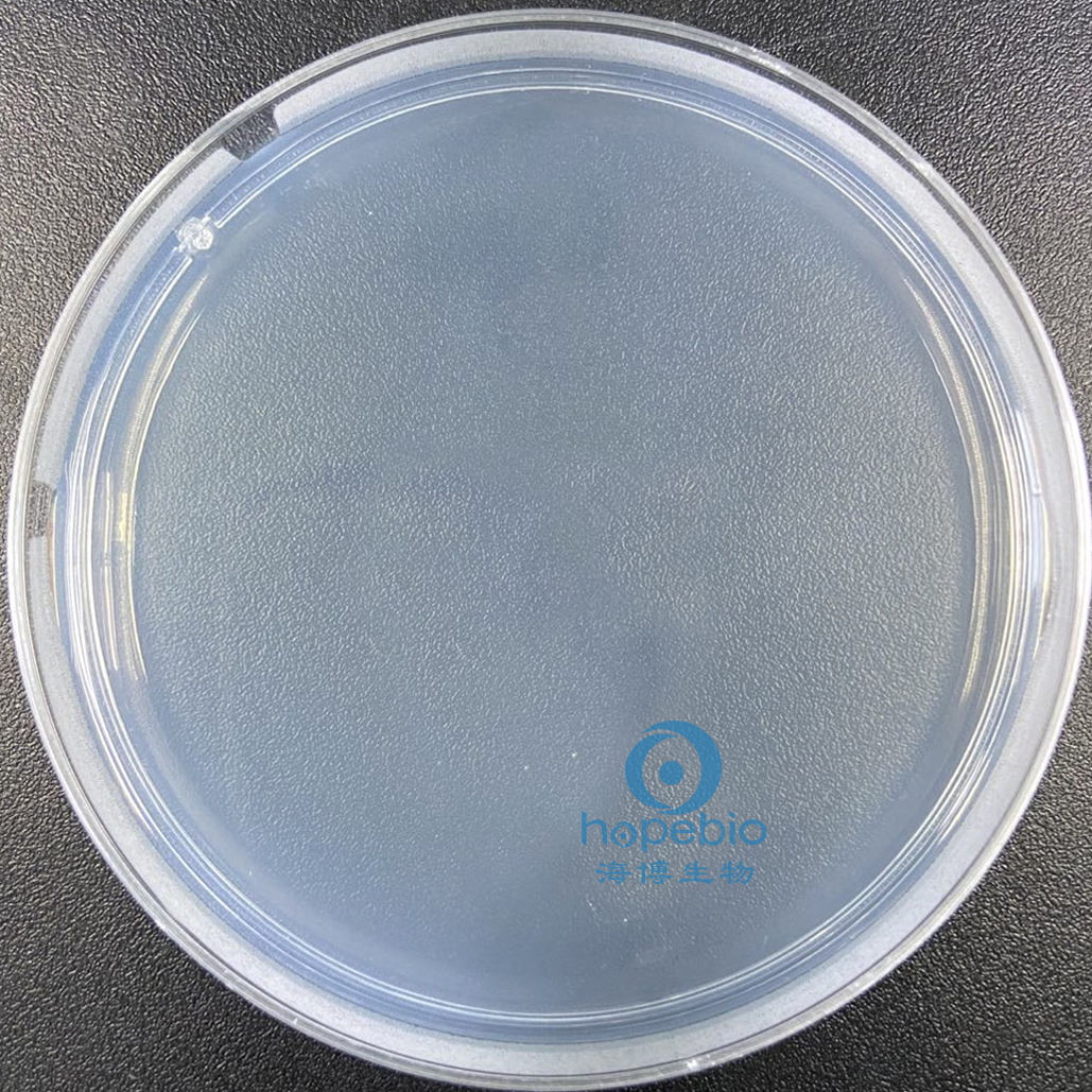 此干燥培养基粉末均匀,呈乳白色,煮沸灭菌后制备好的固体平板为无色透明状。