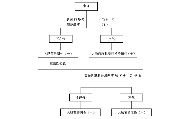 4.2.1.4 凡系革兰氏阴性无芽孢杆菌,再接种乳糖蛋白胨培养液,经36℃±1℃培养24h±2h后,如产酸产气则判定为大肠菌群阳性。