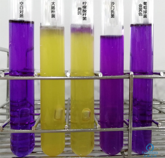 质控菌株接种到乳糖胆盐发酵培养基管中,培养结果如下图所示: