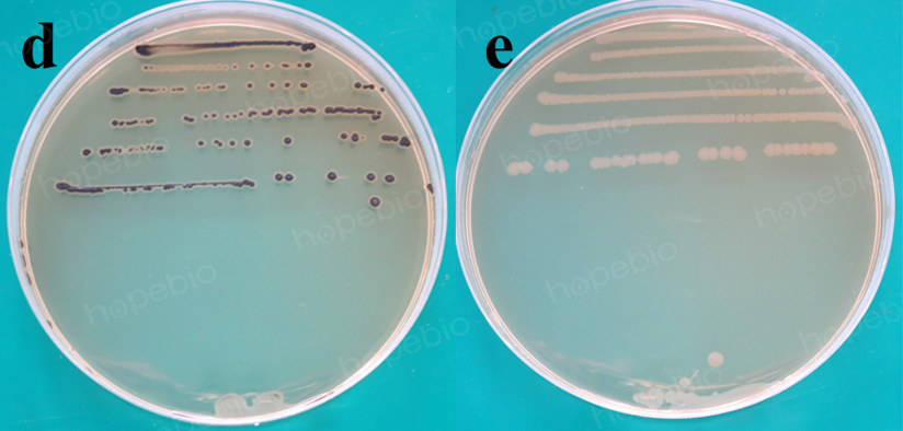 阪崎肠杆菌显色培养基是青岛海博生物公司根据GB4789.40生产的培养基,胰蛋白胨、大豆蛋白胨提供营养,氯化钠维持渗透压,琼脂为凝固剂,脱氧胆酸钠主要抑制革兰氏阳性菌的生长,柠檬酸铁铵、硫代硫酸钠可使产硫化氢的非目标菌呈黑色中心,阪崎肠杆菌可特异性分解底物5-溴-4-氯-3-吲哚-α-D-吡喃葡糖甙使菌落显蓝—绿色,其它不产硫化氢、不分解底物的菌一般显无色或黄色。