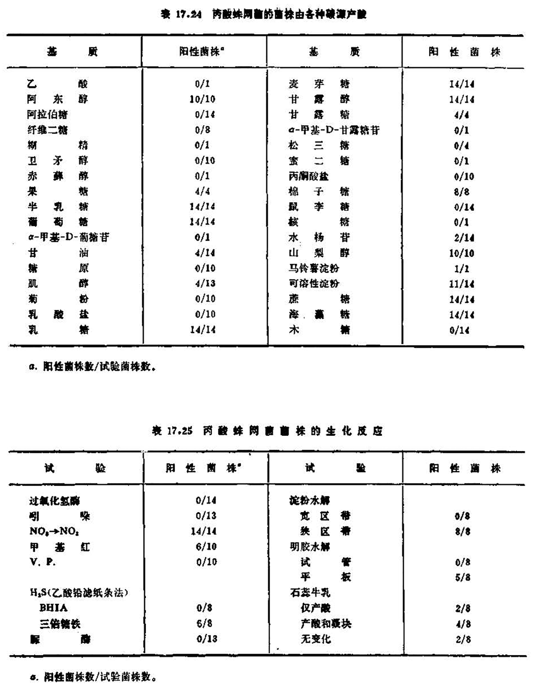 从各种碳源产酸而不产气(表17,24)。生化反应列于表17.25.
