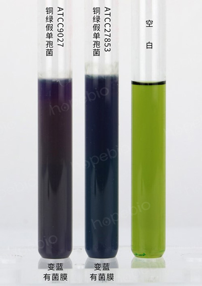 胰蛋白胨、大豆胨提供细菌生长所需的基本营养,氯化钠维持渗透压,少量的葡萄糖可提供碳源,溴麝香草酚蓝和甲酚红为酸碱指示剂,溴麝香草酚蓝酸性条件下为黄色,碱性条件下为蓝色,甲酚弱酸性条件下为黄色,碱性条件下为紫红色,灿烂绿可抑制部分杂菌的生长,L-精氨酸盐酸盐为底物,大多数的假单胞菌能将精氨酸水解产碱,使培养基的pH升高,变为蓝紫色。