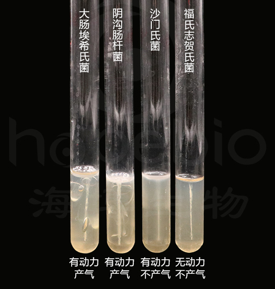 2、取新鲜质控菌株斜面,用接种针挑取菌苔穿刺接种至琼脂底层,36±1℃培养6-8h后,观察结果。