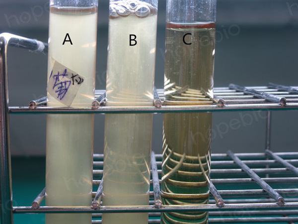 备注:A:乙型溶血性链球菌,B:肺炎链球菌,C:空白对照