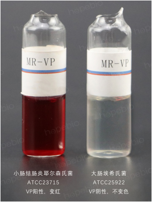 注意事项:建议培养24-48h,滴加V-P试剂后轻轻混匀,阳性反应可立刻或于数分钟内出现红色,如为阴性,应放在36℃±1 ℃继续培养0.5-4 h 再进行观察。
