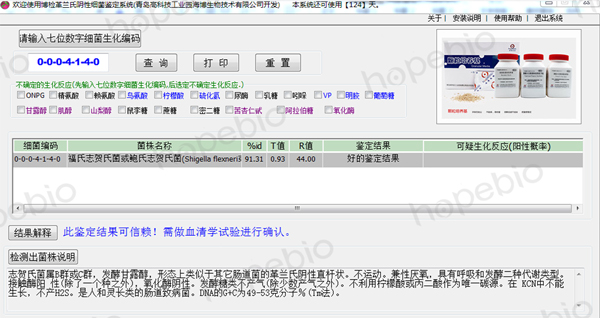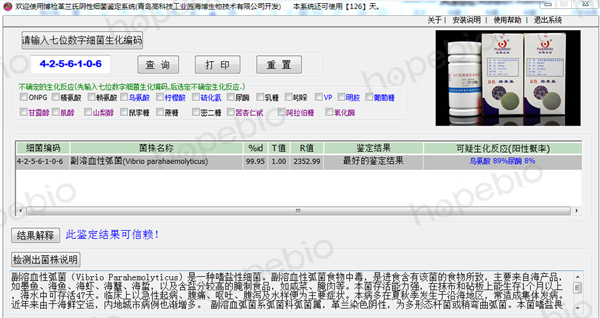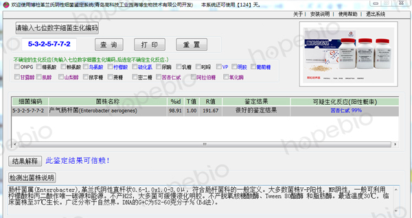 本系统由青岛高科园海博生物技术有限公司联合山东省出入境检验检疫局共同研发设计,筛选21项生化反应,历经两年多的不断改良,现可鉴定一百多种常见革兰氏阴性细菌,鉴定结果接近100%,可广泛用于革兰氏阴性细菌的快速鉴定。