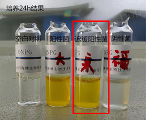 注意事项:ONPG反应较快,接种菌量大时数小时即可获得阳性结果,该试验亦可鉴别迟缓发酵乳糖和不发酵乳糖细菌,如宋内志贺氏菌迟缓发酵乳糖变黄,ONPG可24h内阳性。