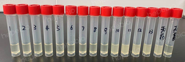 以野生分离到的一株大肠杆菌为例,测试多粘菌素B对该菌的最低抑菌浓度,结果如下图,第1-9支试管澄清,第10支试管开始有明显浑浊生长,说明多粘菌素B对该大肠杆菌的最低抑菌浓度为0.5mg/L。