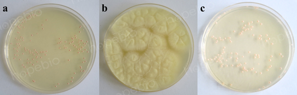 备注:a:酵母菌,b:黑曲霉菌,c:白色念珠菌