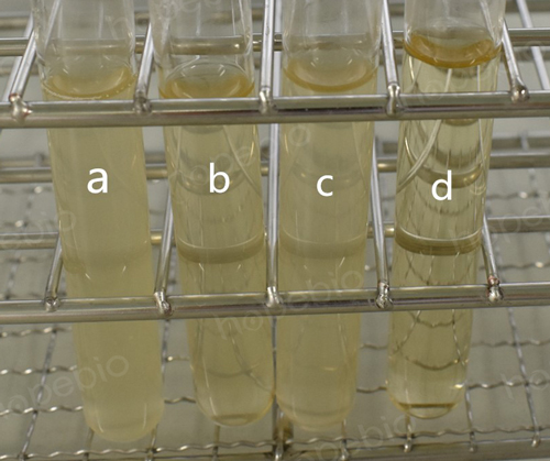 图1:a为大肠埃希氏菌;b为鼠伤寒沙门氏菌;c为阴沟肠杆菌;d为空白