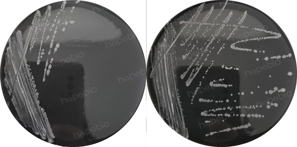 mCCDA原理:肉浸液、动物组织酶解物、酪蛋白酶解物提供碳、氮源,维生素,生长因子;氯化钠维持均衡的渗透压;木炭具有解毒、收集二氧化碳和改变表面张力的作用;去氧胆酸钠为选择性抑菌剂;头孢哌酮可抑制普通肠道菌生长,两性霉素B抑制酵母和真菌生长,利福平可抑制非弯曲菌其他厌氧菌的生长。硫酸亚铁和丙酮酸钠有利于空肠弯曲菌的生长;琼脂是培养基的凝固剂。