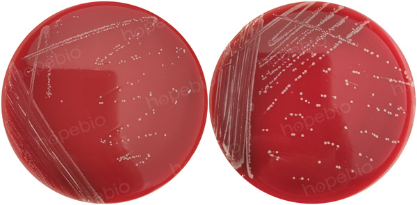 在布氏肉汤中生长呈均匀浑浊。在血琼脂上,初次分离出现两种菌落特征:第一型菌落不溶血、灰色、扁平、湿润、有光泽,看上去像水滴,边缘不规则,常沿划线蔓延生长;第二型菌落也不溶血,常呈分散凸起的单个菌落(直径1nm~2nm)边缘整齐、半透明、有光泽、中心稍浑,呈单个菌落生长。