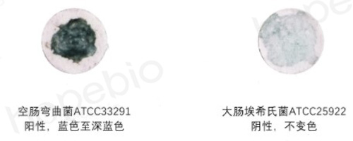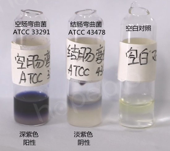 空肠弯曲菌显色培养基上的可疑菌落按照说明进行判定。