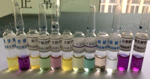 4.挑取TSA上纯培养的单菌落至9mL无菌生理盐水试管内,分别接种于乳糖、麦芽糖、棉籽糖、甘露醇、山梨醇和硝酸盐还原生化管,置于35℃恒温培养箱内厌氧培养。