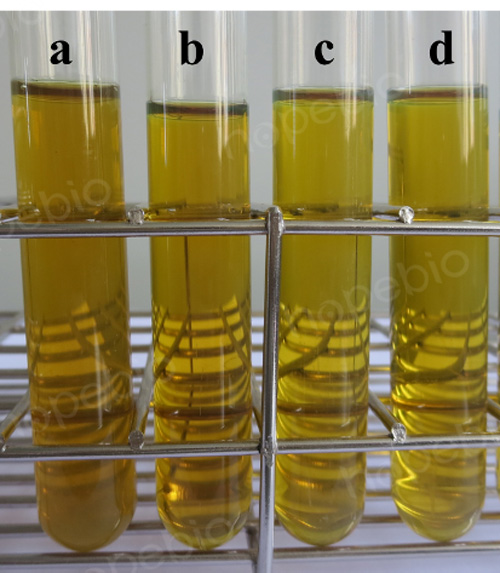 备注:a:单增李斯特氏菌,b:大肠埃希氏菌,c:粪肠球菌,d:空白对照