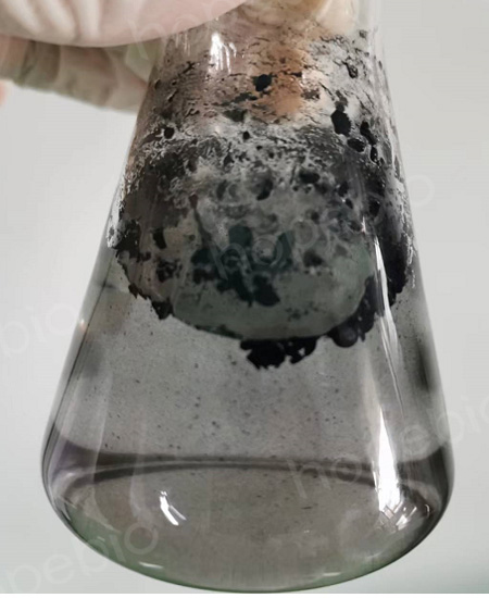 有些微生物培养基在使用过程中需要加入氯化血红素的溶液,如改良GAM琼脂,经常有客户反馈不会配制氯化血红素溶液,配制后粉末全都漂浮在液面上(如图1)。