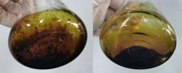 图3 NaOH中溶解的氯化血红素(左:未充分溶解 右:充分溶解)