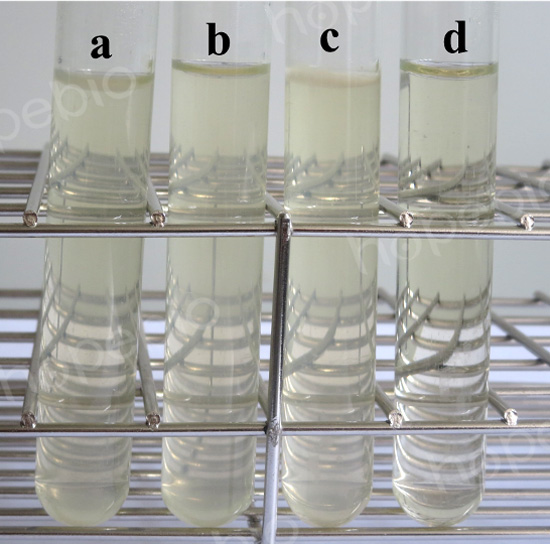 备注:a:大肠埃希氏菌,b:金黄色葡萄球菌,c:铜绿假单胞菌,d:空白对照