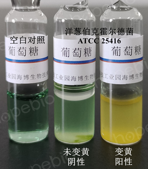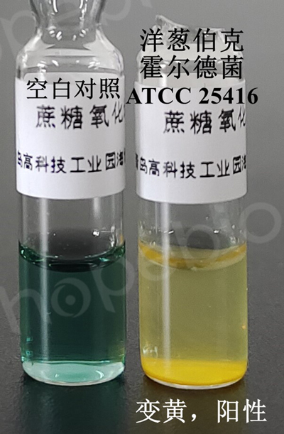 挑取可疑菌落接种于蔗糖氧化培养基,36℃±1℃培养24h,培养基变黄色为阳性。洋葱伯克霍尔德菌为阳性反应,如图10所示。