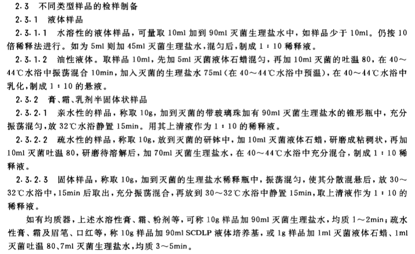 《GB/T 7918.1-1987 化妆品微生物标准检验方法 总则》样品处理方法