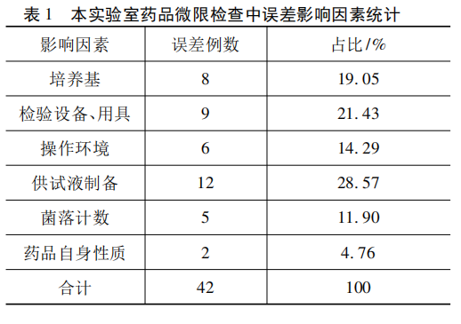 药品微限检查目前最常用的方法是生物学检验技术,该技术操作程序较为繁琐、检验流程要求紧密严格,检验周期较长,导致出现干扰因素的环节较多,容易导致检验结果出现误差。因此,总结分析误差影响因素,在今后的检验工作中给予充分关注,可以减少误差出现的概率,保证检验结果的准确性与可靠性。