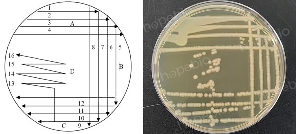 将质控菌株接种至非选择性肉汤培养基中过夜培养制成工作菌悬液,使用1μL接种环挑取1环菌液,按照标准的方法连续划16线,置于标准规定的温度培养,如果仅一半的线有稠密菌落生长,则G为0.5。如果划线上没有菌落生长、生长量少于划线的一半或菌落生长微弱,则G为0,计算G值总和,应达到G≥6。
