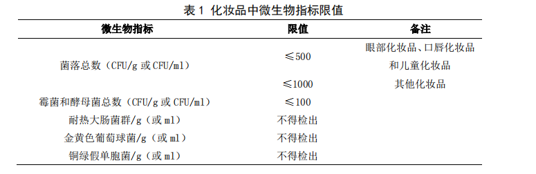 《化妆品行政许可检验管理办法》明确规定化妆品微生物检验项目应包括菌落总数、粪大肠菌群、金黄色葡萄球菌、绿脓杆菌、霉菌和酵母菌;在《化妆品安全技术规范》中阐述了对应上述各项目的检测方法。