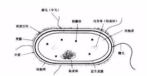 细菌的特殊结构有:荚膜、鞭毛、菌毛和芽孢。