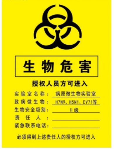 不同等级的微生物实验室在入口处都要贴有不同的标识如下图