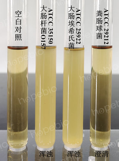 添加剂:每瓶需配套添加6盒HB0106-1新生霉素4.5 mg使用。每支添加于225 mL的mTSB肉汤中。