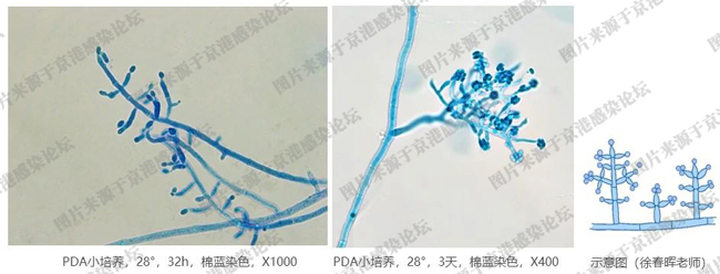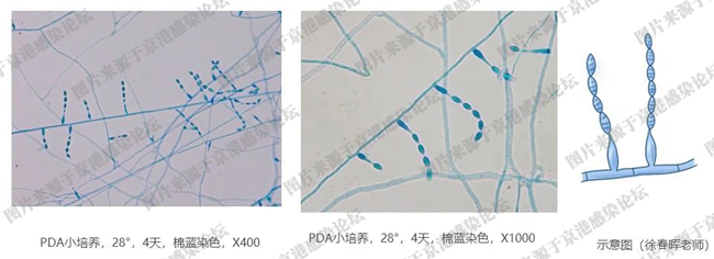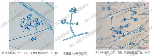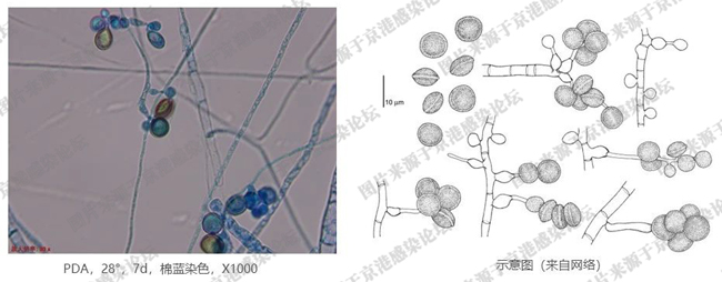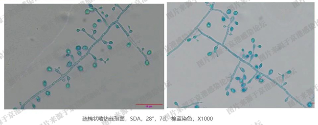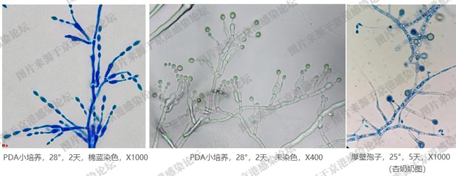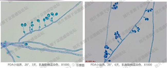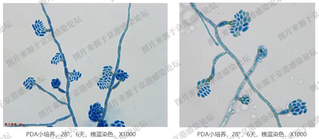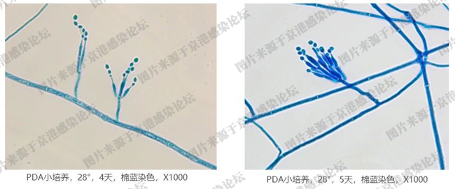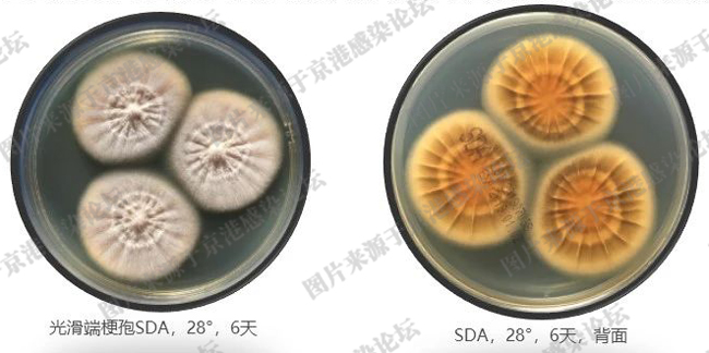 端梗孢具有嗜热性,40-50℃可生长。梭孢端梗孢和光滑端梗孢被报道是感染人类的致病菌,也是潜在嗜神经组织菌。对伏立康唑、泊沙康唑、伊曲康唑和特比萘芬敏感度较高。