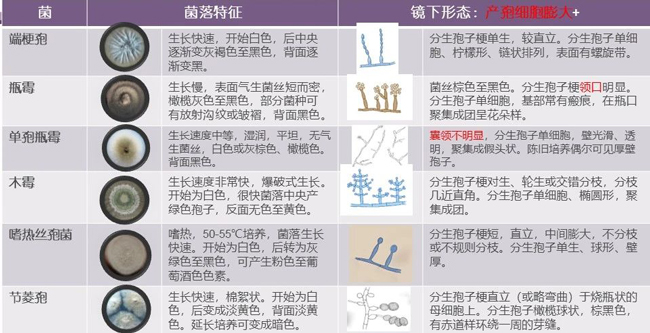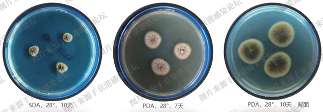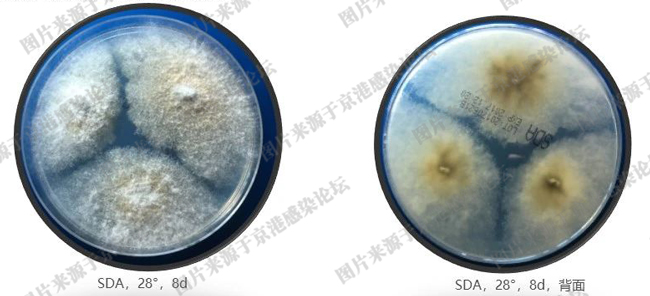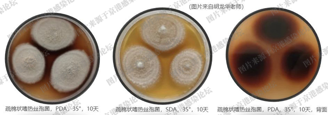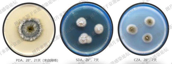 50-55℃培养,菌落生长快速。开始为白色,后转为灰绿色至黑色,可产生粉色至葡萄酒色色素。